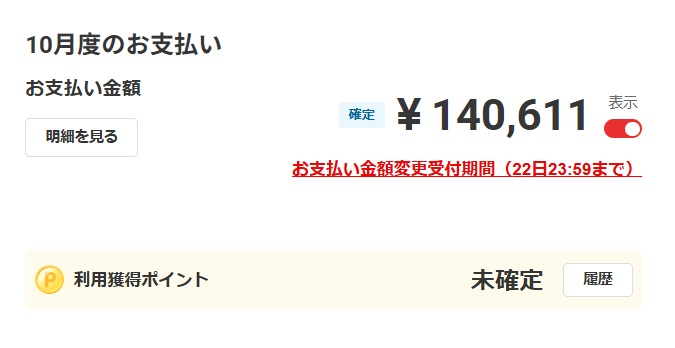 現金支払いしかできないランチのラーメン屋さんとかいったので、その分カード支出が圧縮されているのかもしれませんね。