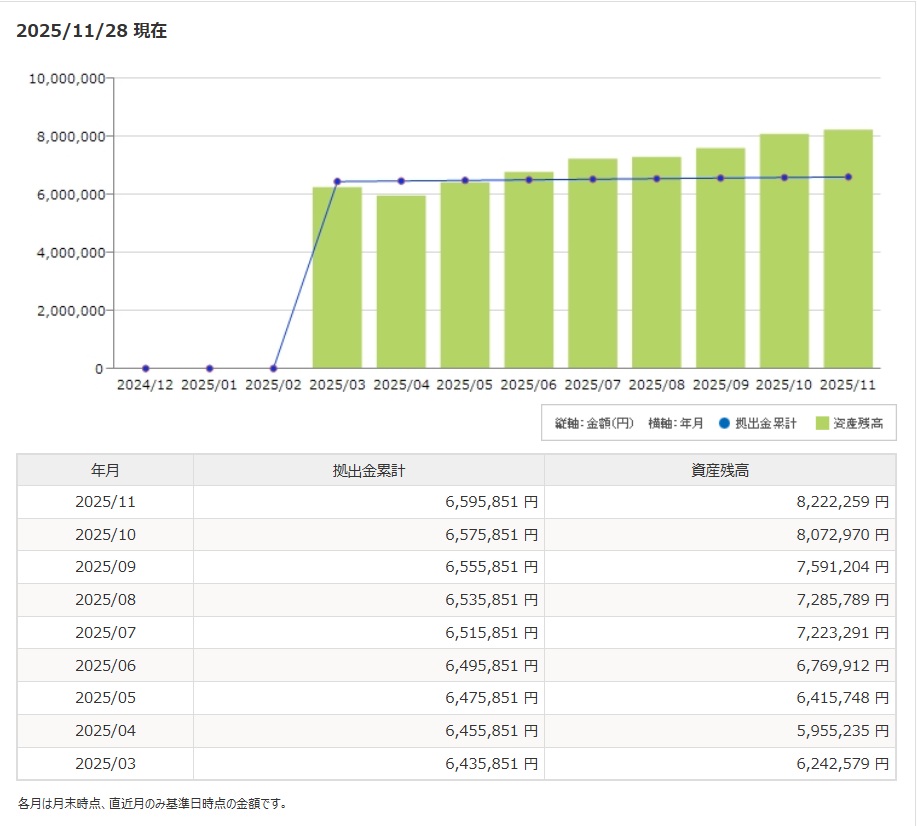 2025年11月31日〆の金融資産合計と前月比の推移をまとめます。