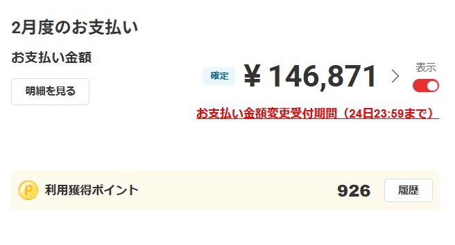 【生活費・娯楽費】2026年1月の生活費のカード引落額は46,871円です。【評価:×】