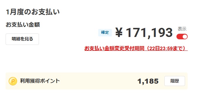 【生活費・娯楽費】2025年12月の生活費のカード引落額は71,193円です。【評価:×】